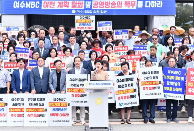 백인숙 의장은 “여수MBC는 단순한 방송사가 아니라 여수시민의 삶을 비추는 거울이자, 지역의 자존심을 함께 지켜온 공영방송”이라며 “이전 계획이 철회되는 그날까지 시민과 함께 끝까지 싸우겠다”고 밝혔다