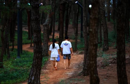 ▲ 울진군, 단체 관광객에 관광버스 지원-관광객이 월송정 맨발걷기 중 |