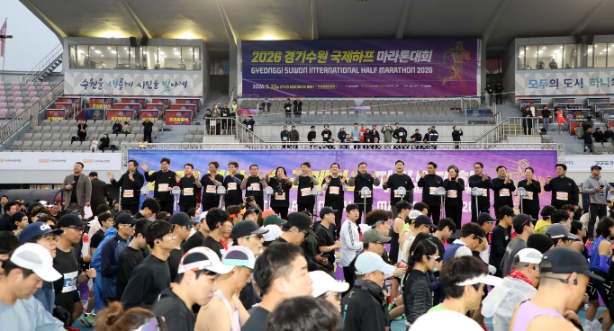 수원특례시의회는 2월 22일 오전 수원종합운동장에서 열린 '2026 경기수원 국제하프마라톤대회'에 참석해 시민들과 함께 생활체육의 가치를 나누고 대회의 성공적인 개최를 응원했다.
