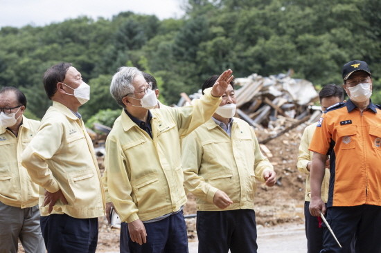 이 지사는 오후에는 가평군 가평읍 산유리로 이동해 산사태 사고 현장을 점검했다. 이곳에서는 지난 3일 토사유출로 인해 펜션이 무너져 3명이 사망하는 매몰사고가 일어났다.