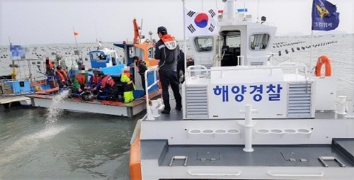 완도해경, 진도 해상 5톤 침수선박 배수 작업 후 예인