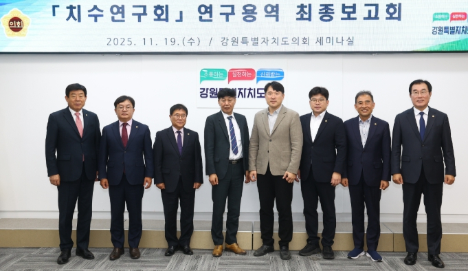 강원특별자치도의회 의원연구단체인 치수연구회(회장 윤길로 의원, 간사 전찬성 의원)는 11월 19일 도의회 세미나실에서 '강원특별자치도 수변지역 관광자원화 방안 연구' 최종보고회를 개최했다.