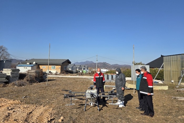 충주시는 7일 고병원성 조류인플루엔자 방생농장 일대에서 드론을 이용해 소독약을 살포하는 방제를 실시했다.