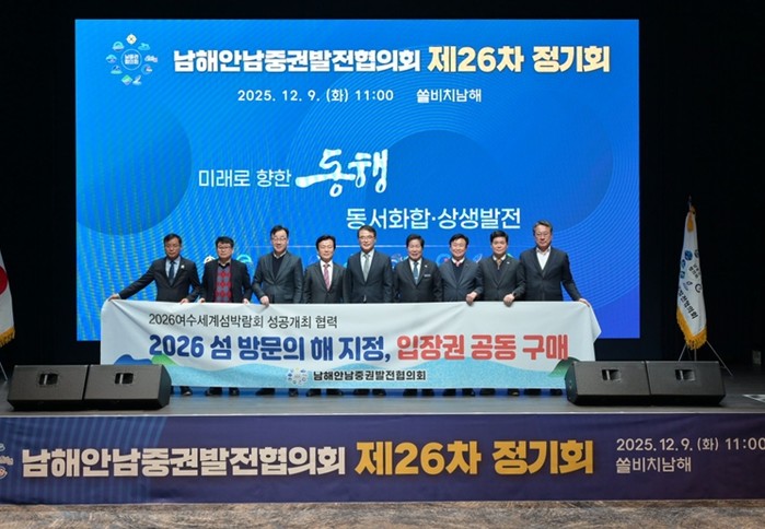 여수시는 9일 경남 남해군 쏠비치남해에서 ‘남해안남중권발전협의회 제26차 정기회’가 개최됐다고 밝혔다.