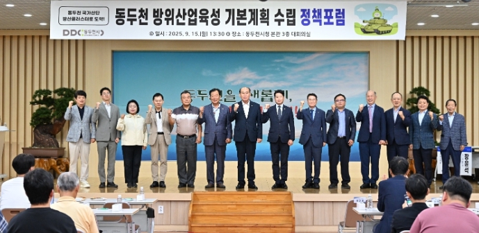 동두천시는 15일 시청 대회의실에서 “동두천 국가산업단지, 방산혁신클러스터로 도약!”을 주제로 ‘동두천 방위산업 육성 기본계획 수립’ 정책포럼을 열었다.