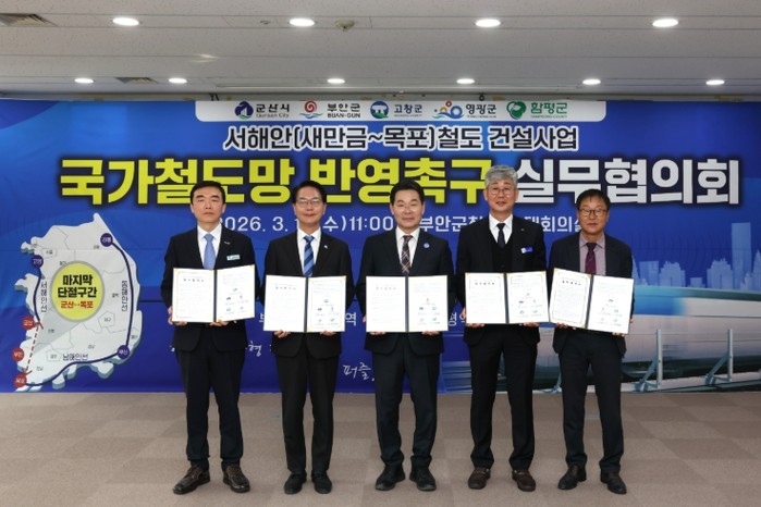 5개 시·군은 최근 부안군에서 '서해안 철도 건설사업 국가계획 반영 촉구를 위한 실무협의회'를 개최하고, 사업 추진을 위한 협력체계 구축과 공동 대응을 위한 협약을 체결했다고 밝혔다.