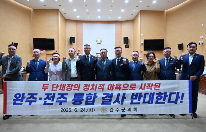 완주군의회는 지금까지 전북특별자치도와 전주시가 일방적으로 추진하는 이번 행정통합은 완주군민의 의사와 지역 미래를 철저히 외면한 행위로 규정하며, 그간 여러 차례 공식적인 반대 입장을 표명한 바 있다.
