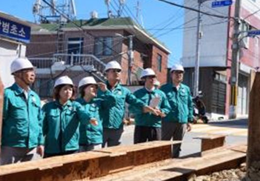 먼저, 의원들은 최근 폭우로 인해 침수 피해가 발생한 범일동 성남일로 4 일원을 방문해 수해방지시설 현황을 점검하고 향후 추진계획을 청취했다. 이 지역은 우수관 통수능 부족으로 침수위험이 상존하는 곳으로, 현재 단기적으로는 대형 우수관 설치가 완료됐으며, 중장기적으로는 북항재개발 2단계 사업과 연계한 펌프장 신설과 저류조 확보 등 체계적인 대책이 추진 중이다.