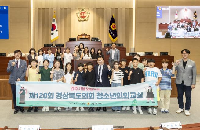 경상북도의회는 9월 16일 본회의장에서 영주 가흥초등학교 학생 22명이 참여한 가운데 '제120회 경상북도의회 청소년의회교실'을개최했다.