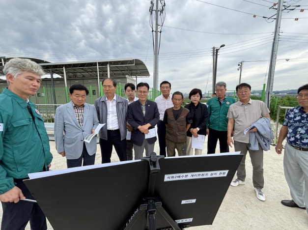 또한, 장마철 대비 침수피해 예방을 점검하기 위해 석화2배수문 게이트펌프 설치 현장도 방문하여 재난 예방 시설 준비 상황을 확인했다.