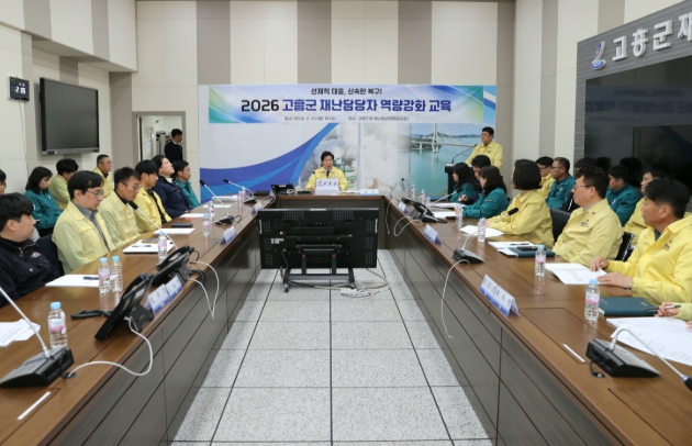 고흥군은 23일 군청 재난종합상황실에서 읍·면 재난업무 팀장과 담당자 등 40여 명을 대상으로 ‘2026년 재난업무 담당자 역량강화 교육’을 실시했다고 밝혔다.