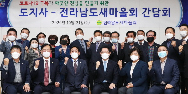 김영록 전남도지사는 21일 전라남도 새마을회와 간담회를 갖고, “깨끗한 전남 만들기 범도민 운동에 적극 앞장서 줄 것”을 당부했다.