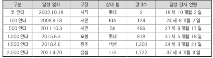 최형우는 KBO 리그에서 본격적으로 활약하기 시작한 2008시즌 이후 지난시즌까지 단 한 시즌을 제외하고 모두 100안타 이상을 기록했으며, 이 기간 시즌 당 평균 약 144개의 안타를 쳐내는 꾸준함을 자랑했다. 이번 시즌에도 100안타 이상을 기록할 시 총 17시즌 세 자리 수 안타를 달성하게 된다.