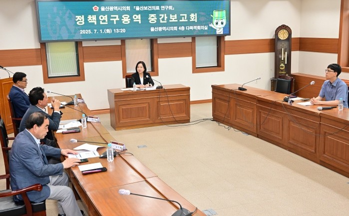 울산광역시의회 의원 연구단체 '울산보건의료 연구회'(회장 손명희)는 1일 울산시의회 4층 다목적회의실에서 연구회 회원 및 용역 수행기관 등 10여 명이 참석한 가운데 정책연구용역 중간보고회를 개최했다고 밝혔다.
