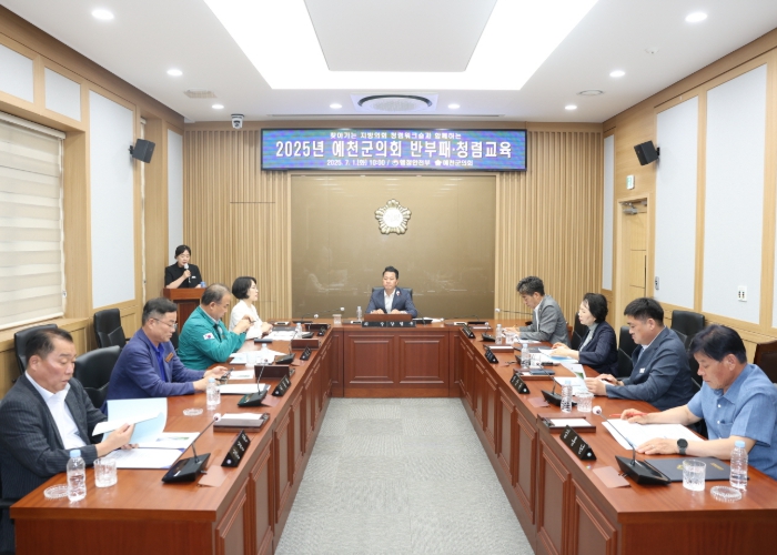 예천군의회는 이달 1일 오전 10시, 의회 특별위원회실에서 군의원과 의회사무과 직원을 대상으로 2025년 반부패‧청렴 및 갑질예방 교육을 실시했다.