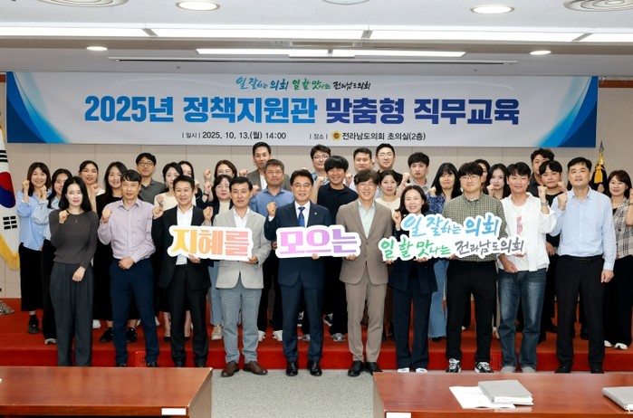 전라남도의회는 10월 13일, 도의회 초의실에서 소속 정책지원관과 직원을 대상으로 ‘맞춤형 직무교육’을 실시했다.