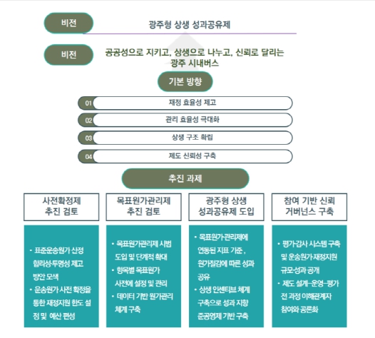 광주 시내버스 준공영제의 해법으로 예산을 절감하면 그 혜택을 시민과 버스업체, 운수종사자가 함께 나누는 ‘광주형 상생 성과공유제’가 제시돼 주목된다.