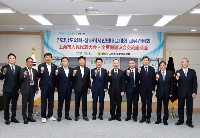 전라남도의회는 10월 31일 오전 도의회에서 중국 상해시 인민대표대회 대표단을 공식 접견하고, 양 지역 지방의회 간 우호교류 및 협력 방안을 논의했다.
