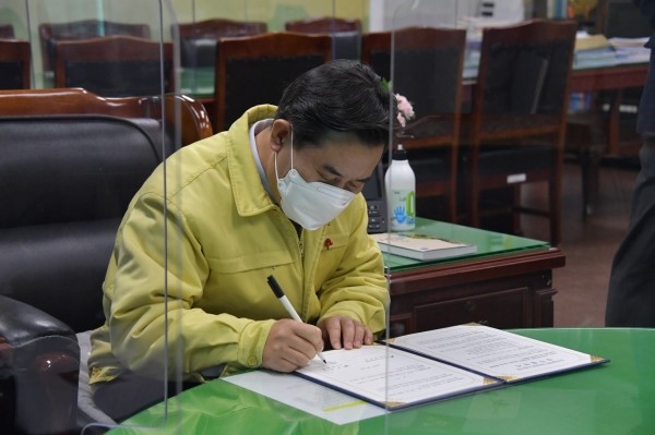 이날 업무협약식은 코로나19 방역을 위해 군수 집무실에서 박정현 부여군수와 정우성 부여군산림조합장만이 참석한 가운데 간소하게 진행됐다.