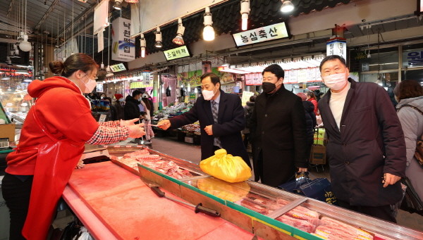[프레스뉴스] 김대일 기자= 장현국 경기도의회 의장(더민주, 수원7)이 2일 수원지역 전통시장 3곳을 잇따라 방문해 설맞이 장보기를 실시하고, 코로나19 장기화로 어려움을 겪고 있는 상인들을 격려하며 실질적 고충을 파악했다.