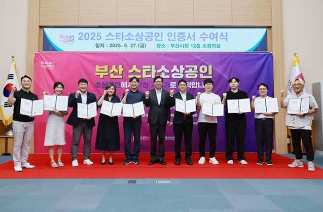 부산시와 (재)부산경제진흥원(원장 송복철)은 '2025년 부산시 스타소상공인' 10개 사를 선정하고, 지난 6월 27일 오전 10시 시청 소회의실에서 수여식을 개최했다고 밝혔다.