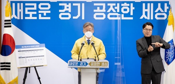 | ▲ 이재명 경기도지사가 2차 긴급재난지원금 설 전 지급을 발표하고 있다.(사진=경기도청) |