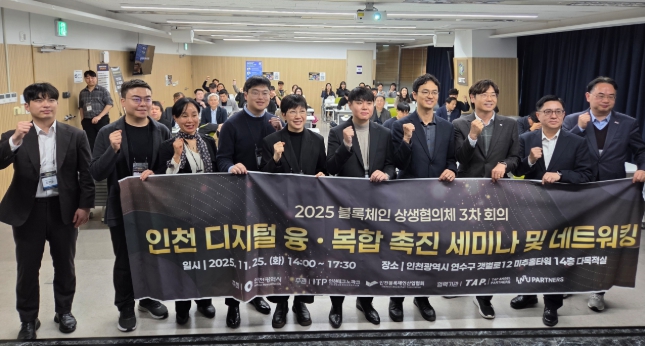 인천광역시는 11월 25일 인천블록체인기술혁신지원센터에서 인공지능(AI)·블록체인 기술의 융복합을 촉진하고 관내 스타트업의 투자 유치를 지원하기 위해 ‘인천 블록체인 상생협의체 회의 및 네트워크 행사’를 성황리에 개최했다고 밝혔다.
