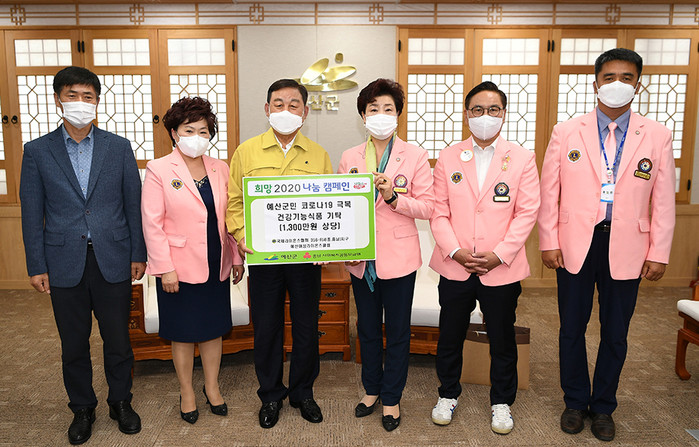 충남 예산군은 17일 예산여성라이온스클럽(회장 곽선자)으로부터 코로나19 극복을 위한 1300만원 상당의 건강기능식품을 기탁받았다.