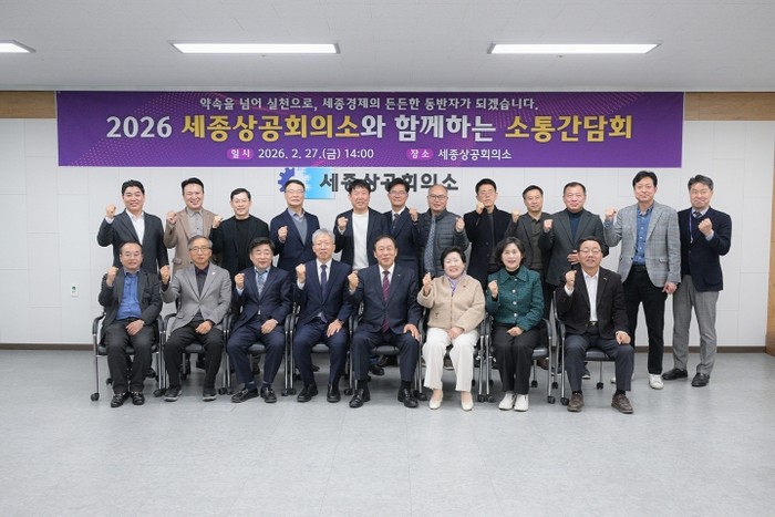 세종특별자치시가 27일 세종상공회의소에서 지역 기업인과 ‘2026 세종상공회의소와 함께하는 소통간담회’를 개최했다.