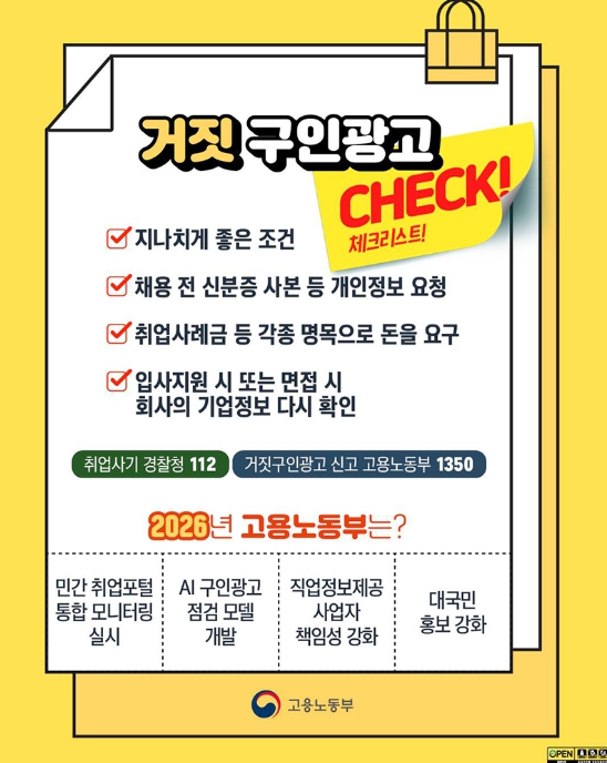고용노동부, '거짓' 구인광고, 체크리스트!