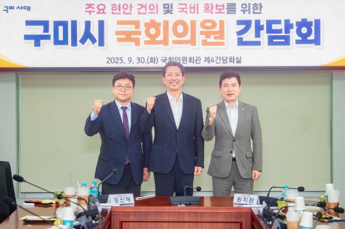 구미시는 9월 30일 국회를 방문해 구자근, 강명구 지역구 국회의원과 간담회를 열고 지역 주요 현안과 국비 확보 전략을 논의했다. 이날 간담회에는 김장호 시장을 비롯해 구미시 주요 간부 공무원 등 30여 명이 참석했다. 시는 현안 사업 추진 상황과 정부 예산 동향을 공유하며 국회 차원의 전략적 지원 방안을 모색했다.