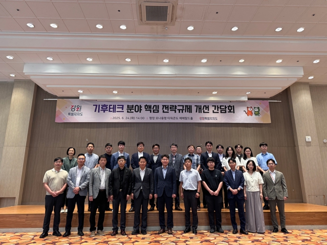 강원특별자치도는 6월 24일 오후 2시 평창 모나 용평에서, 기후테크 산업 관련 역점 추진 6개 시군, 기업, 유관기관, 전문가 등과 함께 기후테크 산업 규제 발굴을 위한 현장간담회를 개최했다.