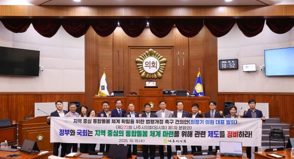 나주시의회는 15일 제273회 임시회 제1차 본회의를 열고 ‘지역 중심 통합돌봄 체계 확립을 위한 법령개정 촉구 건의안’을 채택했다.