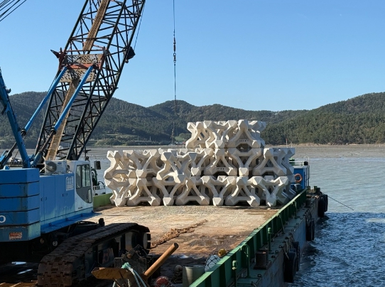 신안군은 다이아몬드 해역 내 수산자원 산란·서식장 조성 일환으로 지난 9월 인공어초 68개 설치에 이어, 11. 12일 수요일 올해 마지막 인공어초 123개를 추가로 투하했다.