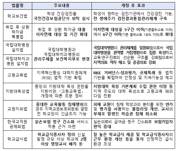 - 고등교육법, 학교급식법 등 교육 분야 주요 법안 국회 본회의 통과