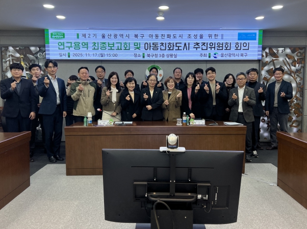 울산 북구는 17일 구청 상황실에서 북구 아동친화도시 조성을 위한 연구용역 최종보고회 및 아동친화도시 추진위원회를 개최했다.