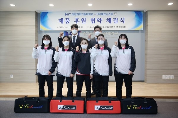 [프레스뉴스] 최정현 기자= 대전과학기술대학교와 ㈜테크니스트는 24일 대학 내 대회의실에서 대학 여자배드민턴선수단에 대한 후원 협약을 체결했다고 25일 밝혔다.