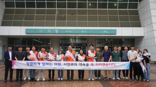 동두천시의회는 7월 22일, 지행역 일원에서 “청렴은 시민과의 약속” 캠페인을 펼치고, 이어 신천변 일대에서 환경정화 활동을 전개하며 공직자의 청렴 실천 의지를 시민과 함께 나눴다.