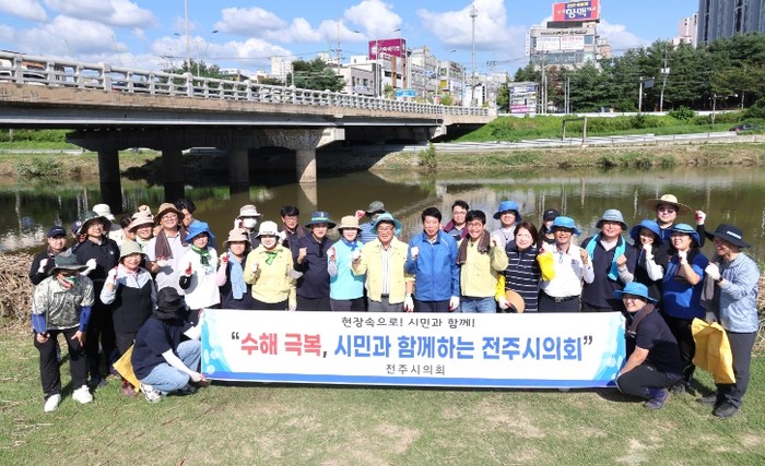 전주시의회가 최근 폭우로 인해 피해가 발생한 전주천 일대에서 대대적인 수해복구 봉사활동을 펼쳤다.