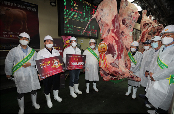 경기도는 지난 10일부터 12일까지 사흘간 부천축산물공판장에서 ‘2020 웰빙한우 고급육 평가대회’를 개최한 결과, 대상 한경미 농가 등 총 12점의 우수 한우를 선정했다고 밝혔다.
