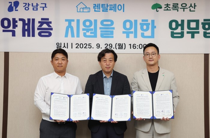 꿈이 모이는 도시, 미래를 그리는 강남구가 9월 29일 렌탈페이, 초록우산과 함께 주거취약계층 지원을 위한 3자간 업무협약(MOU)을 체결했다.