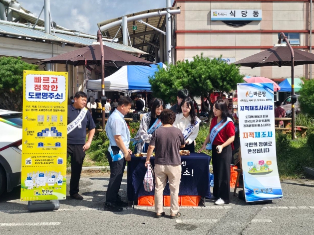전남 무안군은 2025년 추석 명절을 맞이하여 29일 오전 무안전통시장을 찾아 지역 주민들과 시장 방문객들을 대상으로 지적재조사사업 및 도로명주소 합동 홍보를 실시했다.