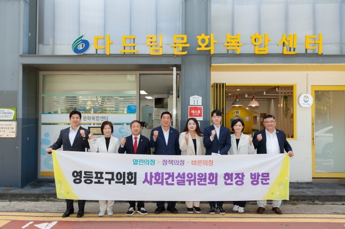 영등포구의회 사회건설위원회(위원장 차인영)는 23일 ‘쪽방촌 공공주택지구 임시이주시설’과 ‘다드림문화복합센터’의 시설 확인 및 운영 현황 등을 점검하기 위해 현장방문을 실시했다.