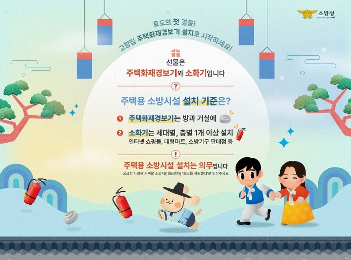 경산소방서는 다가오는 추석 명절을 앞두고 화재 예방과 시민 안전 강화를 위해 9월 26일부터 10월 9일까지 ‘주택용 소방시설 선물하기’ 집중 홍보를 실시한다고 밝혔다.