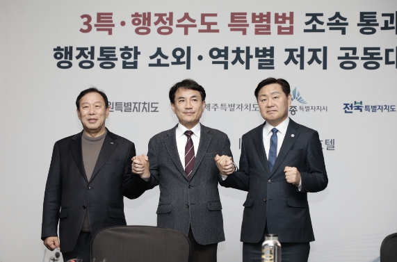 그러면서 ‘상생의 원칙’을 전제로 충분한 숙의를 거쳐 행정통합을 추진해야 한다고 강조하며, ‘5극 3특’ 국정과제의 공정한 추진을 위해 4개 특별자치시도 관련 특별법을 신속하게 처리해 줄 것을 촉구했다.