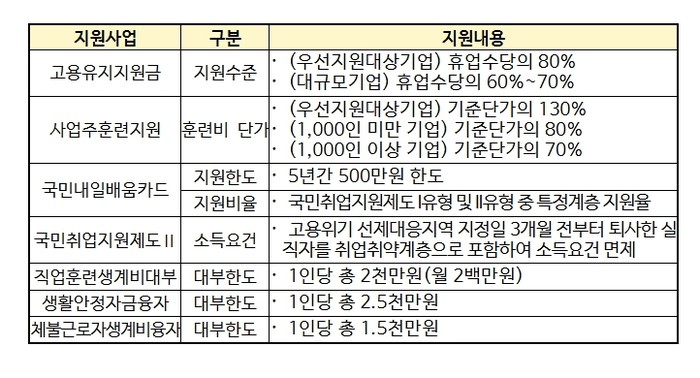 | ▲ 고용위기 선제대응지역 지원 내용 |