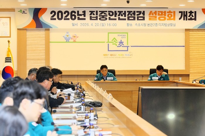 속초시는 4월 20일 시청 디지털상황실에서 배상요 속초시장 권한대행 부시장 및 관계 공무원과 전기·가스·건축 등 분야별 안전관리자문단 등 58명이 참석한 가운데 2026년 집중안전점검 담당자 설명회를 개최했다.
