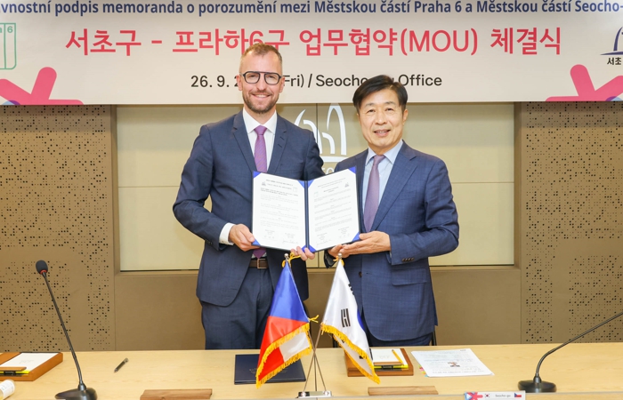 서울 서초구는 지난 26일 구청 5층 대회의실에서 체코 프라하 6구와 문화, 예술, 교육 분야 등 상호 교류 우호증진을 위한 우호도시협정 양해각서(MOU)를 체결했다고 밝혔다.