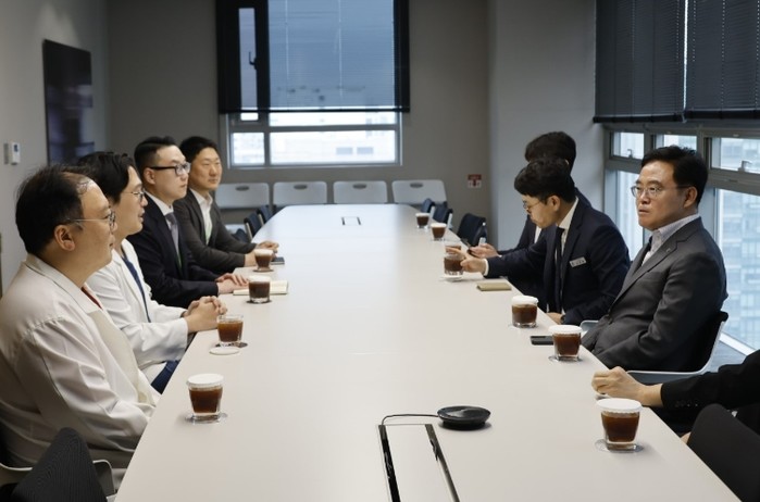 | ▲ 진교훈 강서구청장(오른쪽 첫 번째)이 20일(월) 등촌동에 위치한 부민병원을 찾아 의료소모품 공급 위기에 대한 대응체계와 수급 안정화 방안을 논의하고 있다. |