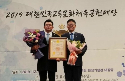 ❍ 한편, 대한민국교육문화체육공헌대상조직위원회가 주최하고, 한국환경체육 청소년연맹이 주관하는 2019대한민국교육문화체육공헌대상은 대한민국의 교육, 문화, 체육, 환경 등 사회 각 분야 발전에 공헌한 유공자를 매년 수상자를 선정하고 있으며, 올해는 문화 부문(배우 이영하, 방송인 박수홍 등), 체육 부문(한국권투위원회 회장 홍수환, 대한축구협회 전무 홍명보 등), 의정 부문(국회의원 신동근 등), 교육 부문(한국교원단체총연합회장 하윤수 등)에서 54명의 수상자를 선정했다.